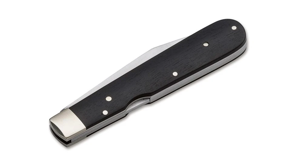 The result is a charismatic pocket knife with a new lease of life, exuding fin de sicle charm a very special piece mainly because of its clean lines and characteristic grind. Following the classic style, the plates are brass while the bolsters are nickel silver. The 440C blade is secured with a back spring. Certified imported Ebony handle scales add an elegant accent.
