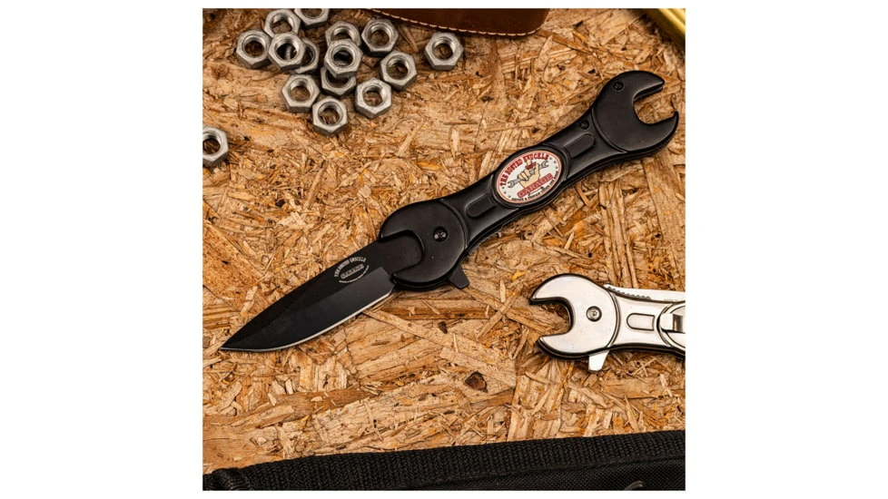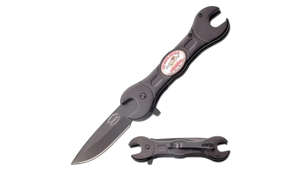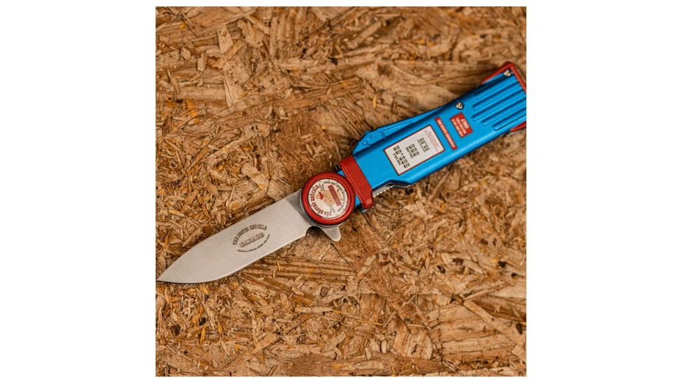The Busted Knuckle Garage 3″ Drop Point Folder Blue/ss is a great looking folding knife that features a brilliantly designed gas pump handle. This Folding Knife from the knife craftsmen at The Busted Knuckle Garage is made with a spring assist, so you do not have to keep adjusting the lock. The Busted Knuckle Folding Knife has a 3in stainless steel blade, with a non-reflective blue anodized aluminum handle that features a gas pump handle and is easily deployed with the push of a button. This Busted Knuckle Folding Knife has a stainless steel liner lock, so you do not have to keep messing with it to open it. For a great looking knife that will not let you down in the field, choose the Busted Knuckle Folding Knife w/ Blue Handle.![]()