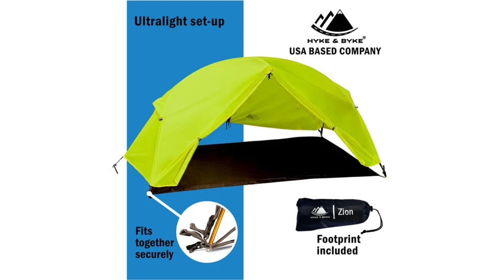 Constructed with more durable materials and a super-convenient single-pole design, the Zion 2P offers more features and more headroom. And it sets up in minutes! Perfect for the ultralight, backpacker – or the casual camper – this all-in-one package will up your pack weight by about 6lbs, or under 4lbs using our ultralight configuration (see photos).![]()