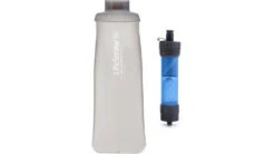 Compact and ultralight filter and 22 oz (0.7 L) squeeze bottle weighs 3.15 oz (89 g) and has an easy-to-fill wide opening