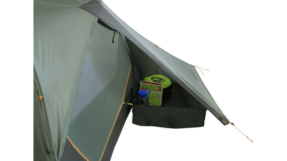 The tent itself features a tapered floor plan to save weight without sacrificing livable space, and a tub floor design to increase privacy and weather protection. Each asymmetrical vestibule keeps gear tucked out of the way, and our Landing Zone waterproof storage tub offers a protected, mud-free dumping ground. Thoughtful new details include an overhead, diffusing Nightlight Pocket and integrated Gatekeeper door tiebacks, while an internal daisy chain, gear loft, and gear pockets offer plenty of storage and org.