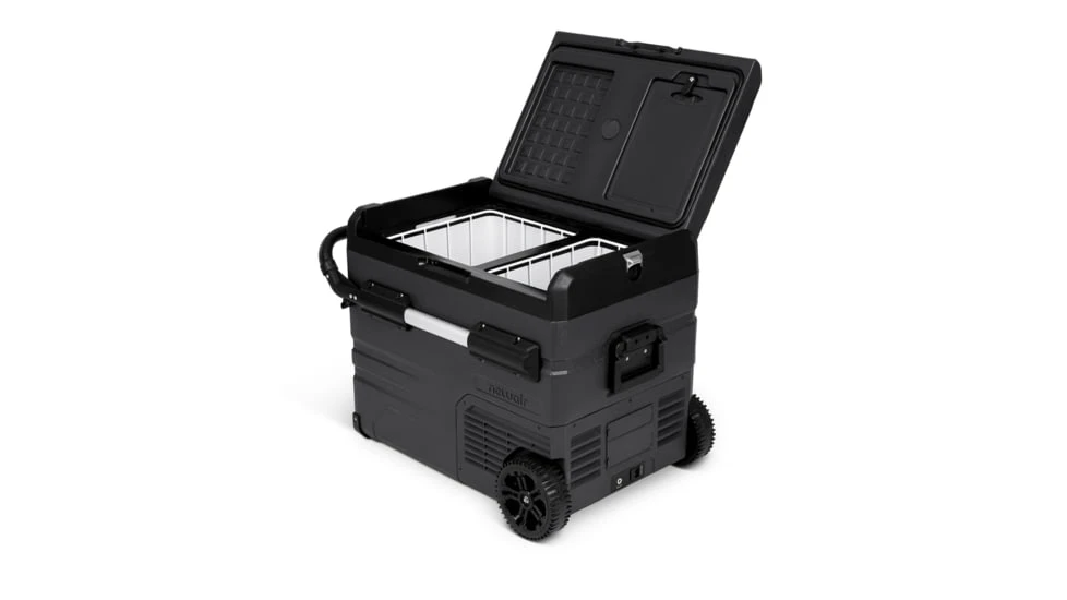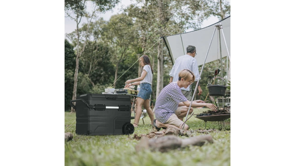 The Newair Electric Car Cooler is purpose-built for outdoor enthusiasts, with weather stripped reversible doors and reinforced corners. The retractable pullout handle has easy-grip padding, while the all-terrain wheels make it a snap to bring this portable RV fridge just about anywhere you can break a trail. From tailgating to the Tetons, this fridge does it all.