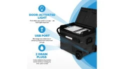 Worried about using your car battery to run an outdoor fridge? Don’t be. The Newair Electric Car Cooler comes with three battery protection modes Low, Medium, and High for total peace of mind. Plug-in this chargeable 12v cooler to your truck or rely on sun energy to solar power for full off-the-grid camping.