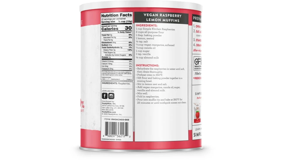 Be the first to review “ReadyWise Simple Kitchen Freeze-Dried Raspberries – 22 Serving Can” Cancel reply