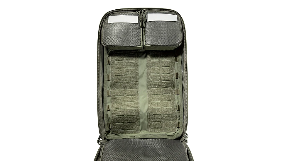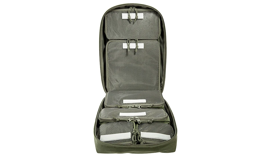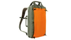 Escape and Survival backpack for personal equipment. The TT Survival Pack offers the right size and equipment for the most important survival utensils. The fully expandable main compartment features 6 pockets of varying sizes with transparent lids, 4 of which can be removed. The main compartment is also covered with a large MOLLE hook and loop area, which allows for individual additions. The bottom compartment contains a double-sided rain cover (one side with stripes in warning orange) and a tac marker. Two shallow zippered compartments on the front are great for storing documents. Additional pockets or panels can also be hooked into the existing hooks on the front. Backpack shoulder straps as well as carrying handles can be stowed when the backpack is stored in vehicles.![]()