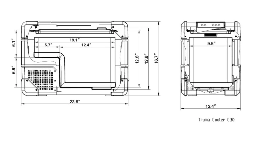 The Truma C30 Single Zone Portable Fridge/Freezer is the smallest portable freezer in the Truma lineup. Compact and powerful, it features the same, cooling technology as large portable fridge/freezers. With the Truma C30, you have temperature control capabilities that allow you to adjust interior temperatures to cooling or freezing conditions. The Perfect Portable Fridge and Freezer for Small Cars. With about two feet of interior fridge and freezer space, there’s enough room for your beachside picnic or the six-pack for the tailgate. At 39Ibs, it’s durable enough for any adventure and light enough to remove from your vehicle and put back into storage when you’re done with your trip. Power Your Adventure. With the LED interior light, you’ll have full visibility when you’re hunting down a late-night snack. Use the USB charging port to keep your phone powered all day long. Trust the power of Truma to keep your food and drink fuel cold for as long as you need it – no ice required.![]()